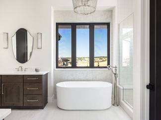 Behind the kitchen is the private primary suite, with a private entrance to the back patio, a 5-piece spa bathroom, and a his/hers closet. Finishing the main floor, the Saratoga provides an additional main floor bedroom with a connecting en suite bath, and a large mudroom and laundry.